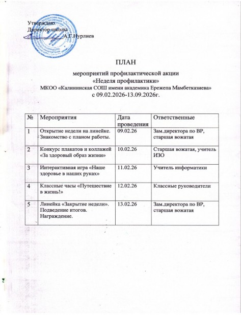 План работы МКОО "Калининская СОШ имени академика Ережепа Мамбетказиева" зимний этап Всероссийской акции "Безопасное детство 2022-2023"